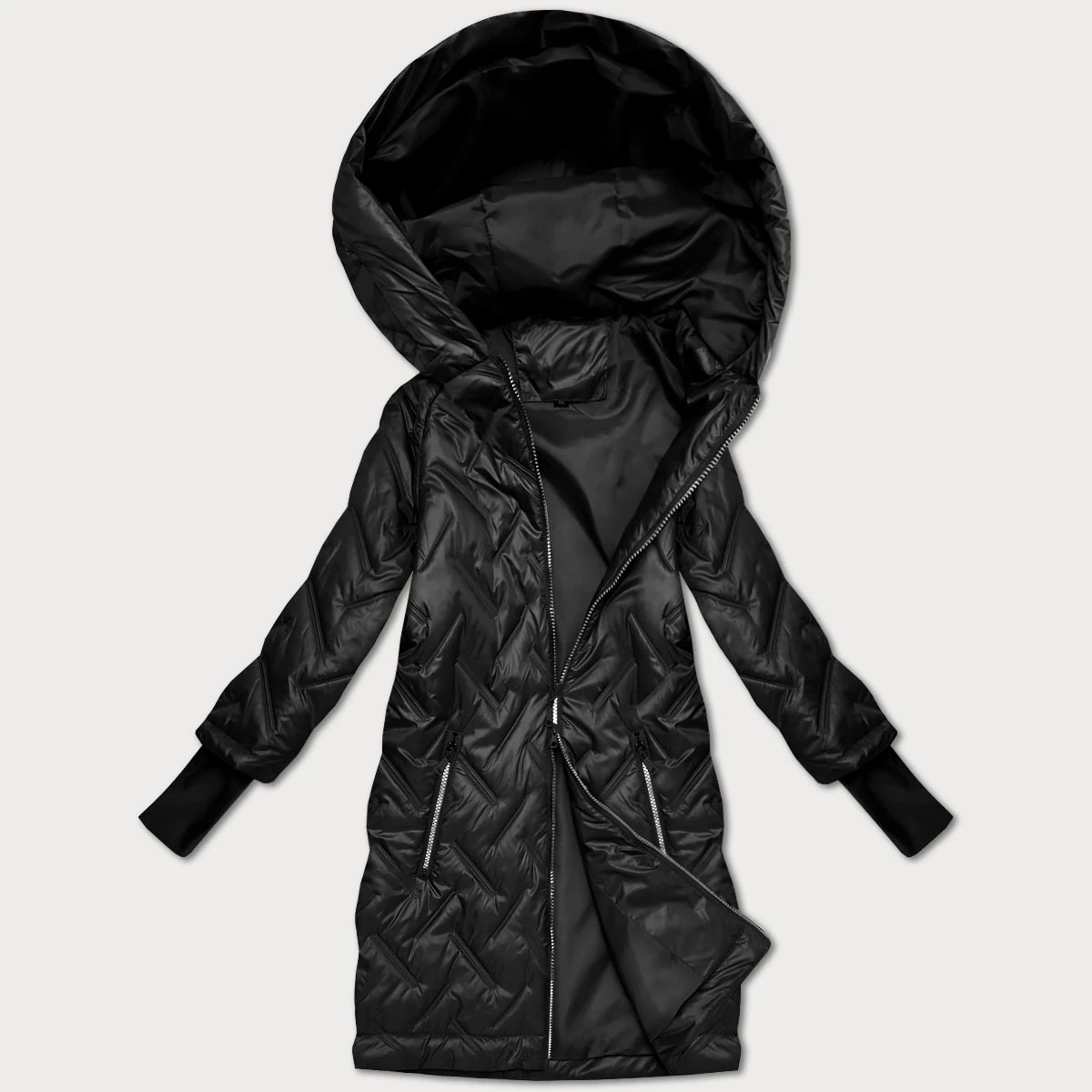 Černá prošívaná bunda s trapézovým střihem a s kapucí (T2-2290#-1)