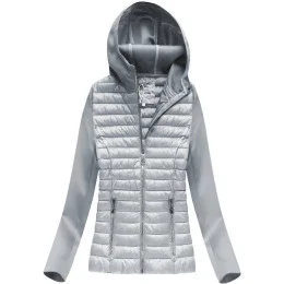 Šedá dámská prošívaná bunda z různých prošívaných materiálů (18019)