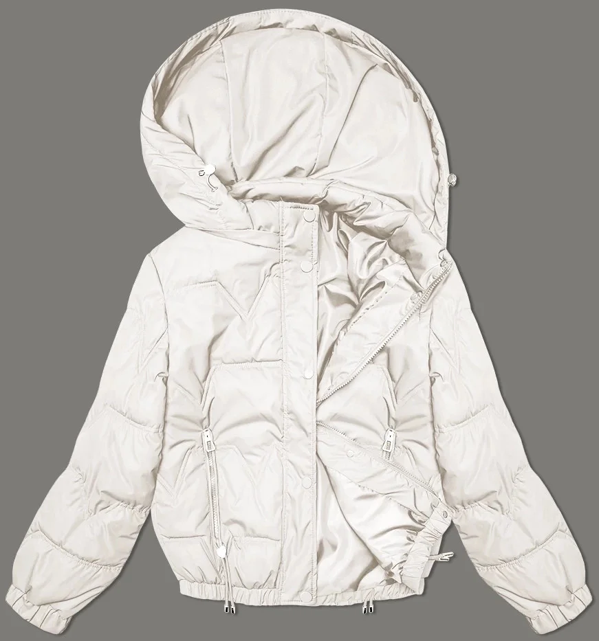 Prošívaná bunda v ecru barvě s odepínací kapucí Miss TiTi (2482)