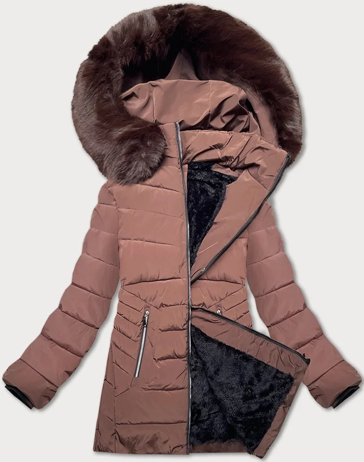 Dámská prošívaná zimní bunda v čokoládové barvě s kapucí S'west (B8299-14)