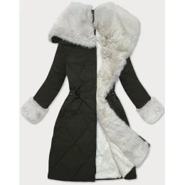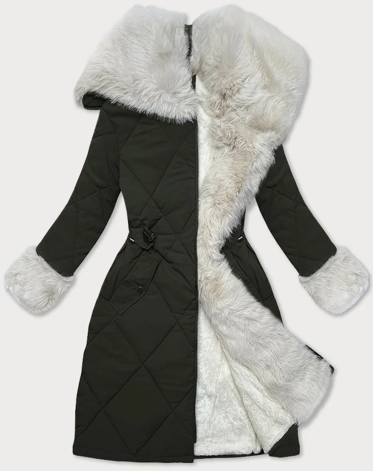 Army-béžová prošívaná zimní bunda s kožešinovou podšívkou Way Mode (WD202308)