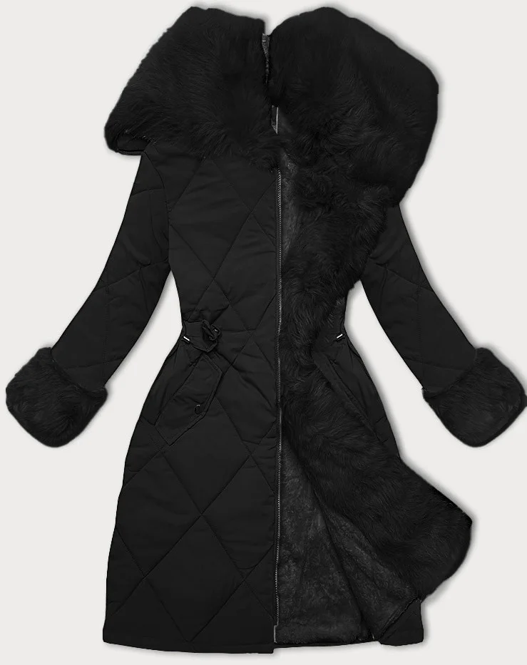 Černo-černá prošívaná zimní bunda s kožešinovou podšívkou Way Mode (WD202308)