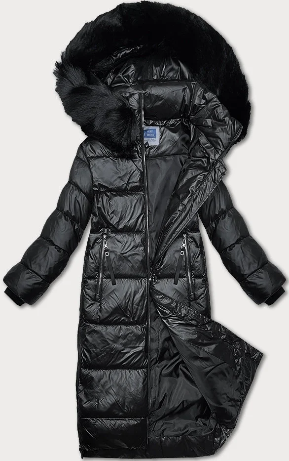 Černá prošívaná zimní bunda s kapucí Way Mode (9837#)