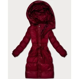 Prošívaná zimní bunda ve vínové bordó barvě s páskem J Style (5M3253-1)