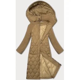 Béžová prošívaná dámská bunda pro přechodné období s délkou ke kolenům Way Mode (OMS-10WD-03)