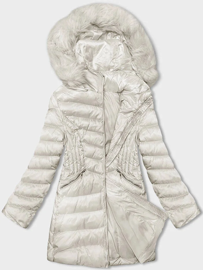 Dámská prošívaná bunda v barvě ecru pro přechodné období (5M3162-254)