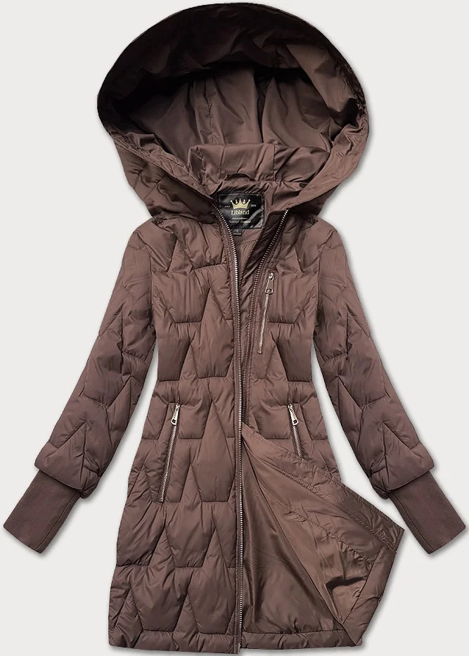 Hnědá dámská prošívaná bunda pro přechodné období s látkovými stahovacími lemy Libland (LD-7775)