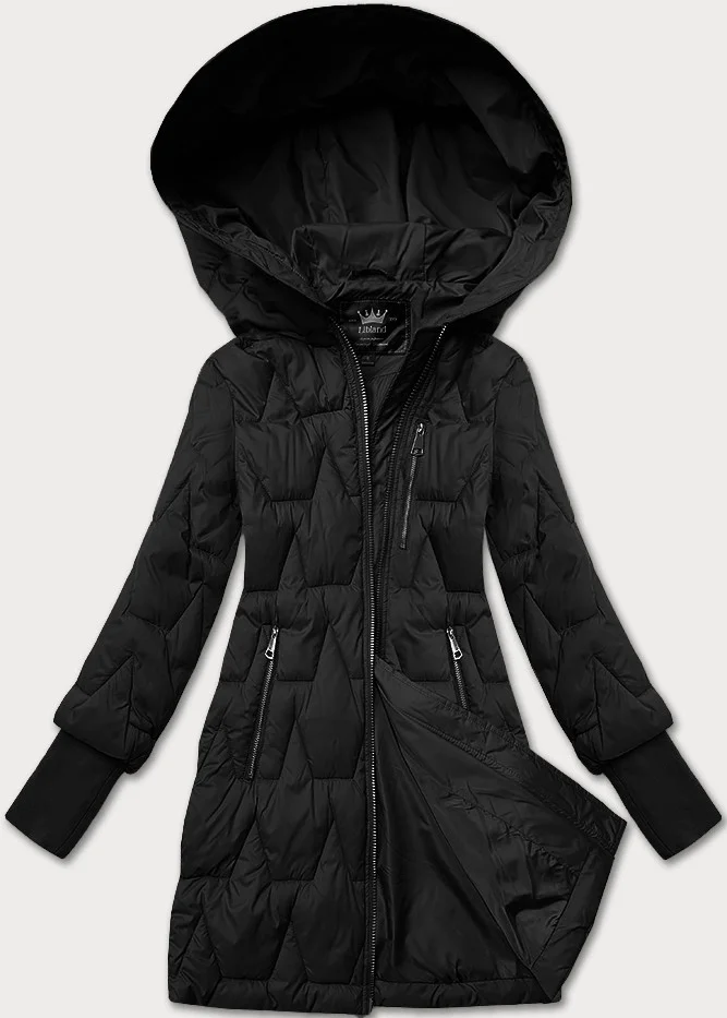 Černá dámská prošívaná bunda pro přechodné období s úpletovými stahovacími lemy Libland (LD-7775)