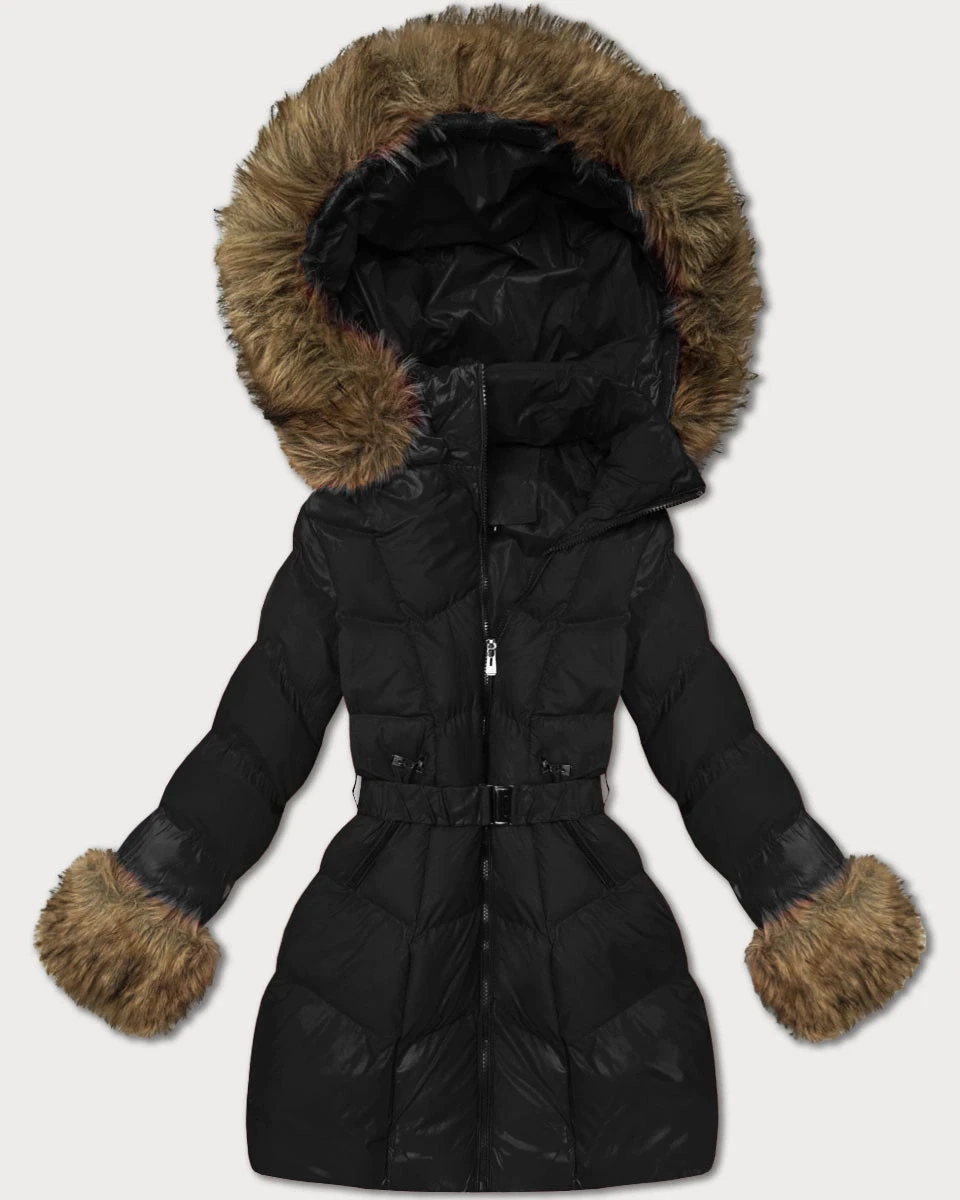 Černá dámská prošívaná bunda pro přechodné období s kožešinou J Style (5M3357-392)
