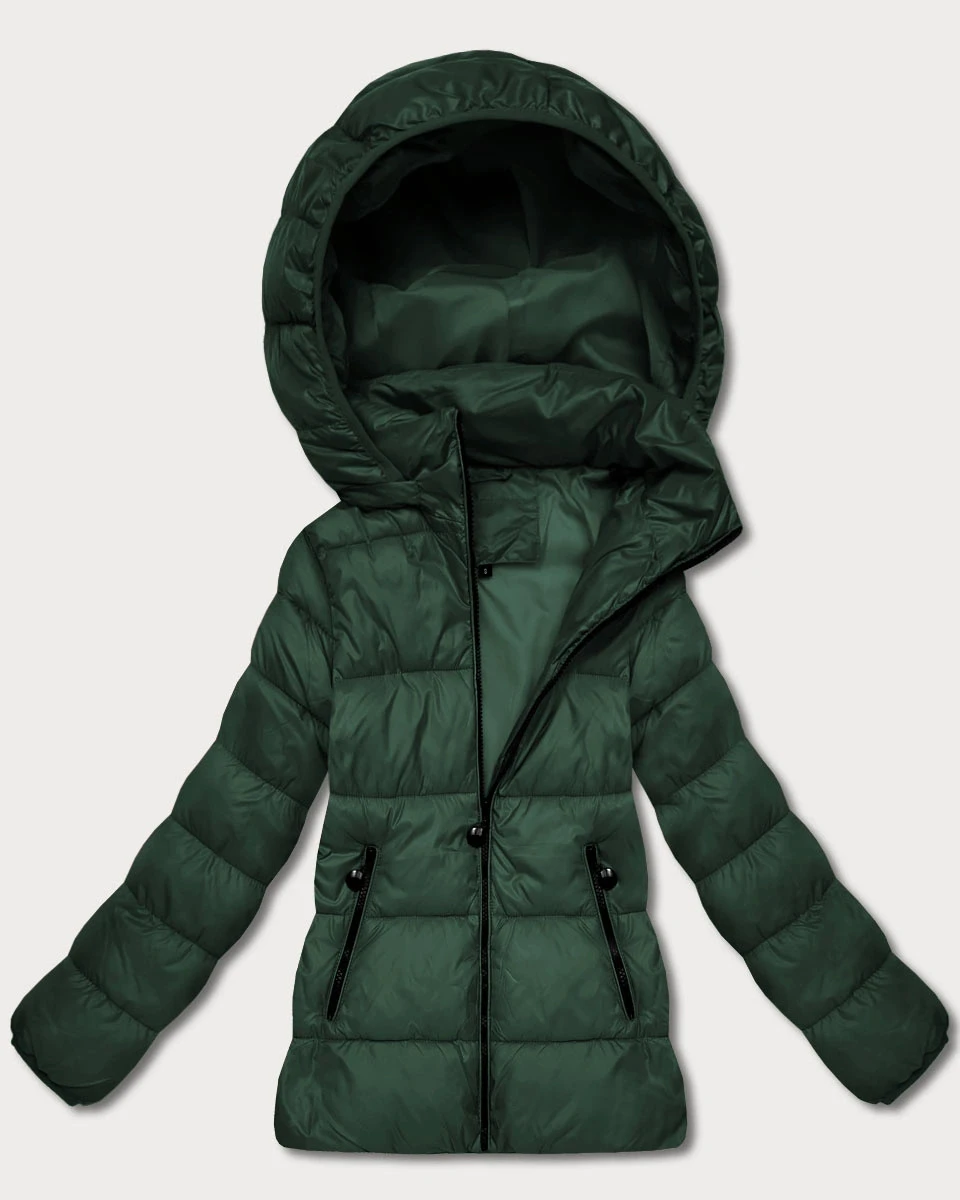 Tmavě zelená dámská prošívaná zimní bunda v délce k bokům (T3-2656#-33)