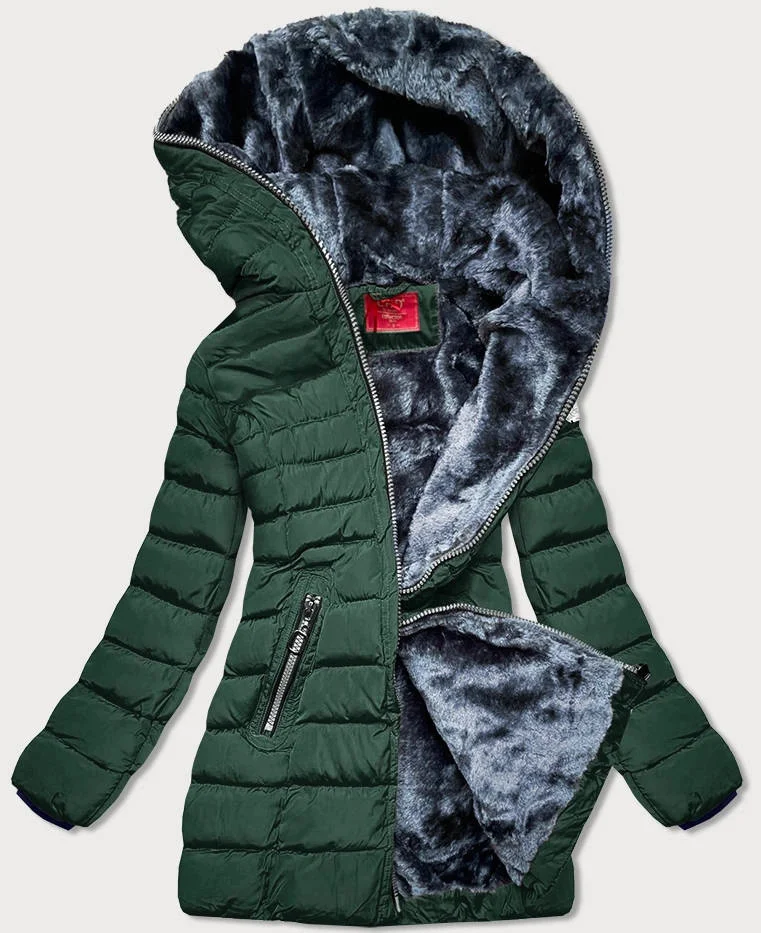 Zelená dámská prošívaná zimní bunda s kapucí (m-133)
