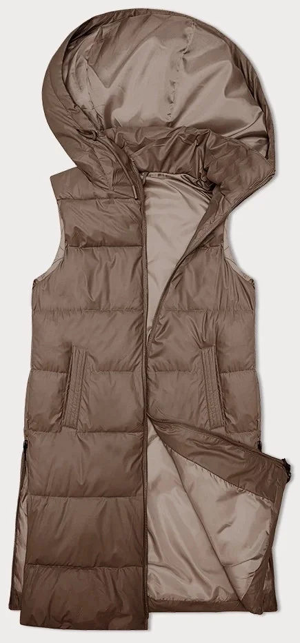 Tmavě béžová prošívaná péřová dámská vesta S'West (B8223-12)