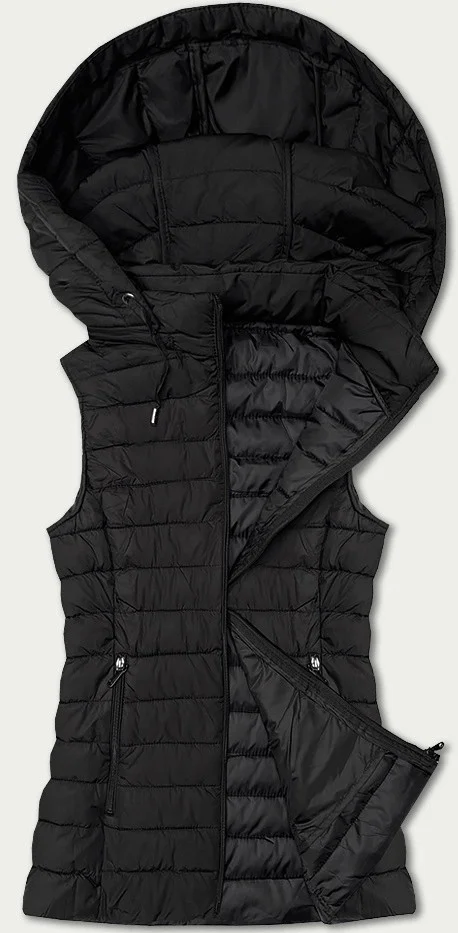 Černá dámská prošívaná vesta s kapucí J style (16M9152-392)