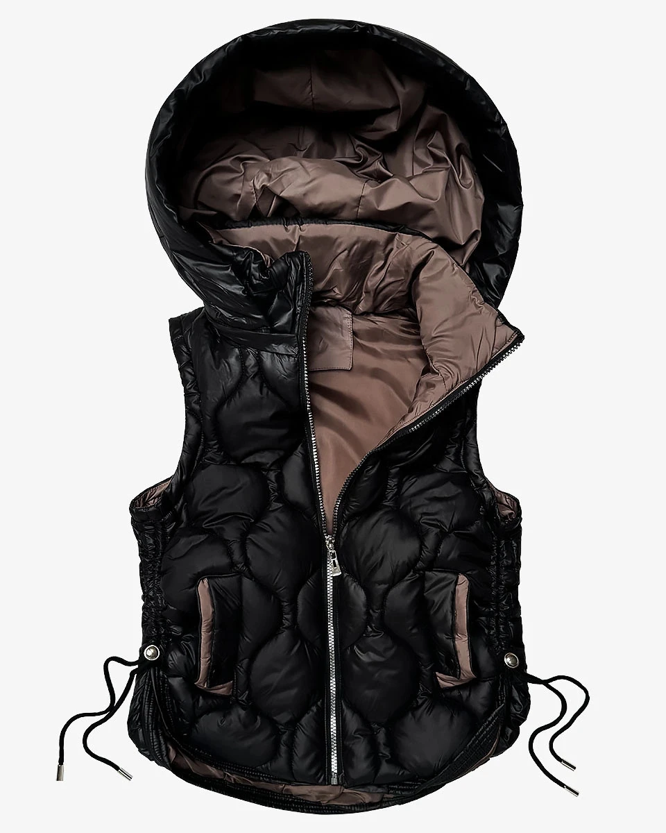 Černo-hnědá prošívaná dámská vesta se stahovacími boky J style (5M3235-392A)