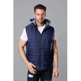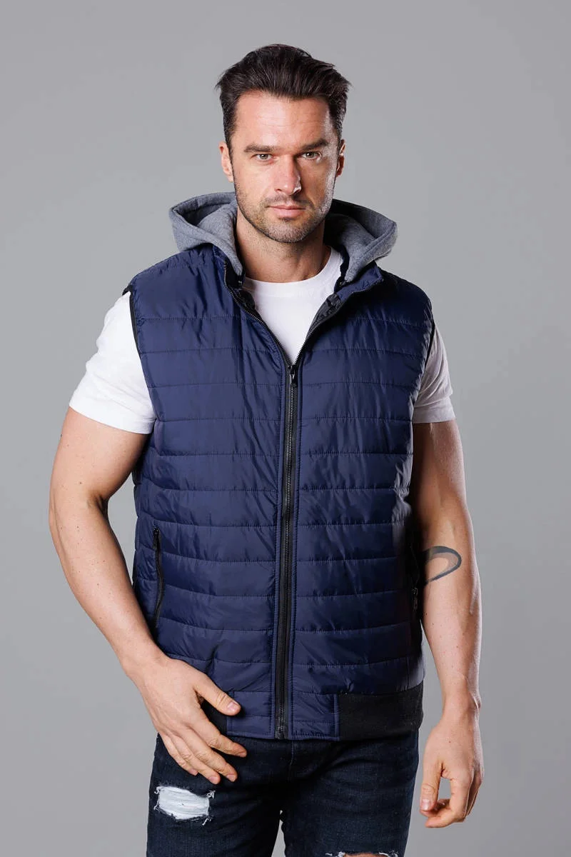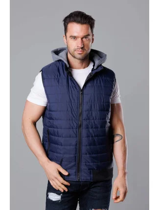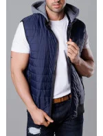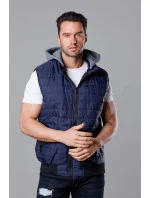 Tmavě modrá pánská prošívaná vesta s kapucí (8M983-215)