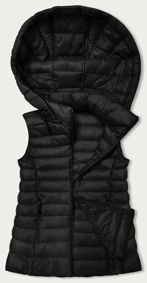 Černá dámská prošívaná vesta s kapucí (16M9139-392)