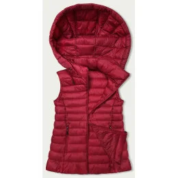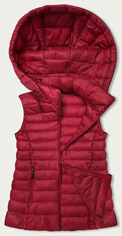 Červená dámská prošívaná vesta s kapucí (16M9139-270)
