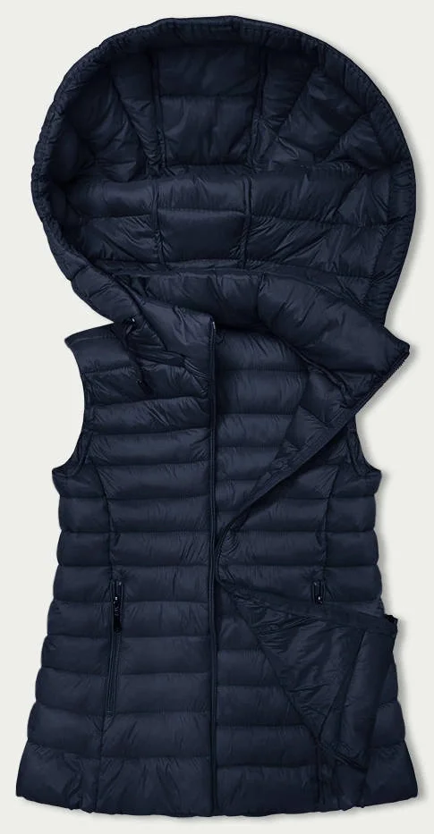 Tmavě modrá dámská prošívaná vesta s kapucí (16M9139-215)