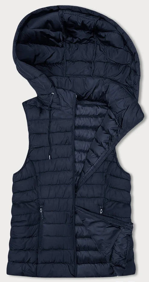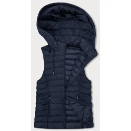 Tmavě modrá dámská prošívaná vesta s kapucí (16M9150-215)