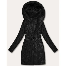 Černý dámský prošívaný kabát s páskem S'West (B8508-1)