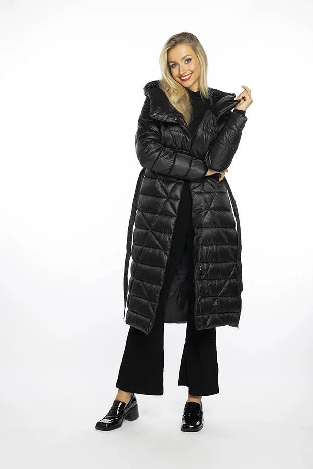 Černý dámský prošívaný kabát s kapucí (AG1-J9069)