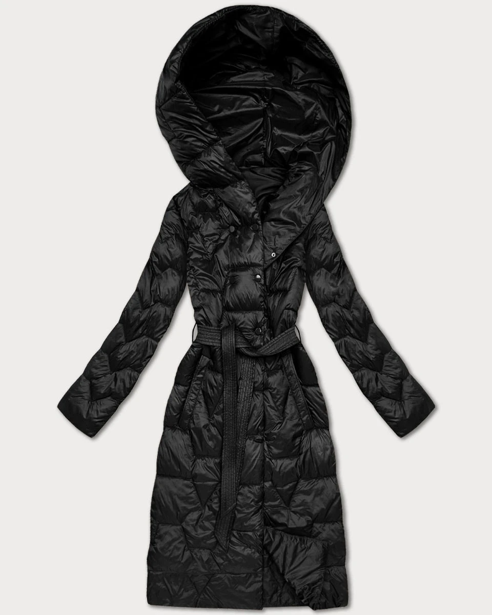 Černý prošívaný kabát s páskem Libland (LD-7806)