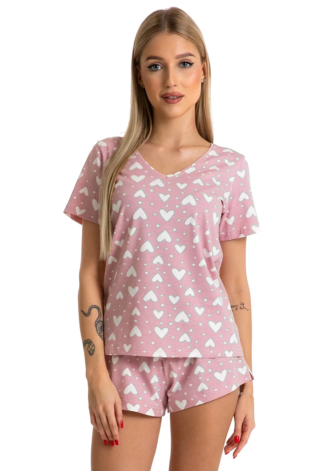 Noční košile značky Piu Bella. model PKK-43. Výrobek je vyroben z 94 % bavlny, 6 % elastanu. délka rukávu: krátký. délka: krátká. dámský výrobek. typ výstřihu: špičatý.
