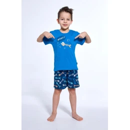 Chłopięca piżama Cornette to doskonały wybór dla małych miłośników wygody i stylu! Wykonana w 100% z wysokogatunkowej bawełny, jest miękka, przewiewna i delikatna dla skóry. Koszulka z krótkim rękawem ozdobiona kolorowym nadrukiem nadaje jej modnego wyglądu, a wzorzyste spodenki zapewniają swobodę ruchów i świetnie komponują się z górą zestawu.