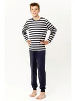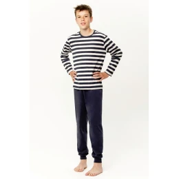 Chlapecké pyžamo s dlouhými rukávy, pruhované. doplněné dlouhými pevnými kalhotami s manžetami.