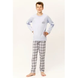 Chlapecké pyžamo z kvalitní bavlny. Tričko s dlouhými rukávy zdobené jemným potiskem. Dlouhé kostkované kalhoty s pohodlnou gumou v pase
