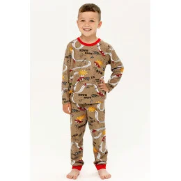 Chlapecké pyžamo z kvalitní měkké vzorované bavlny, tričko s dlouhým rukávem, dlouhé kalhoty, výstřih, manžety a nohavice zakončené pohodlnou šňůrkou.