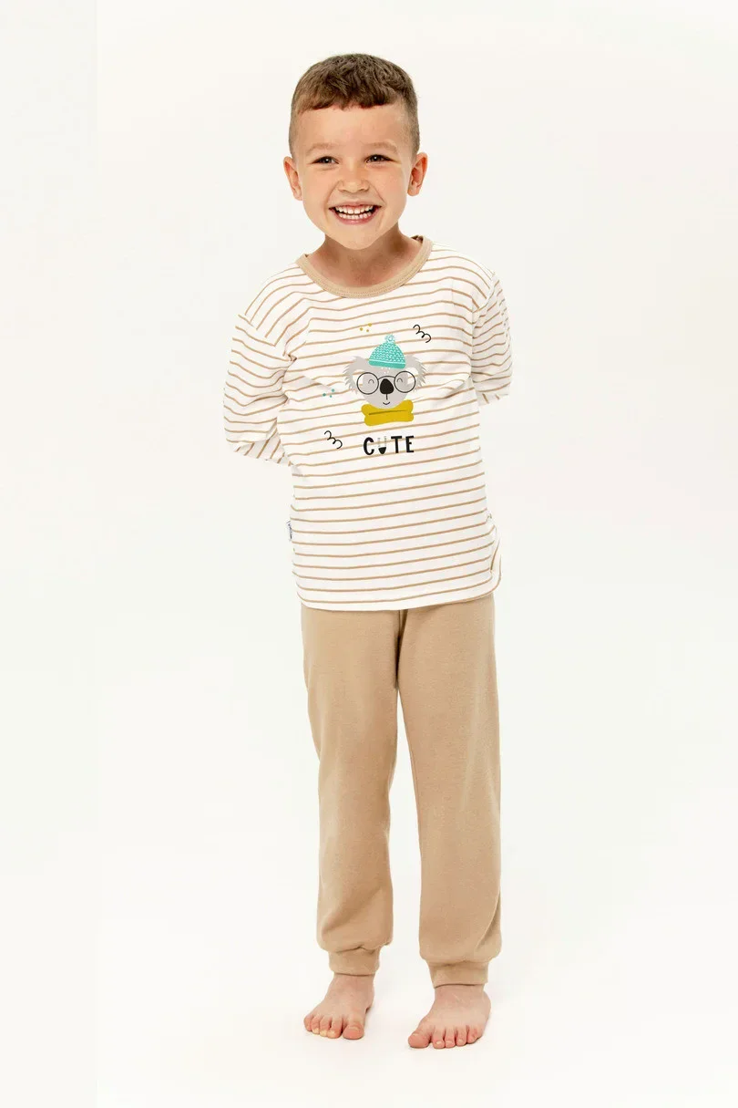 Chlapecké pyžamo z kvalitní měkké bavlny, tričko s dlouhým rukávem a barevným potiskem na přední straně, jednobarevné kalhoty s pohodlnou šňůrkou v pase.