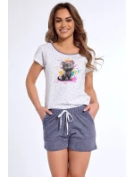 Women's short-sleeved pyjamas made of high-quality cotton, decorated with a colourful print on the front, patterned short shorts with pockets, decorative drawstring waist, packaged in a box.