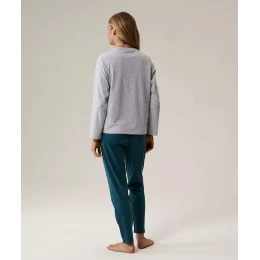 Užijte si kvalitní a pohodlný spánek s elegantním pyžamem Atlantic NLP-498. Tento model nabízí diskrétní dvoubarevné provedení (např. šedý melír vršek a modré kalhoty) s jemnou výšivkou na hrudi, které působí decentně a stylově.