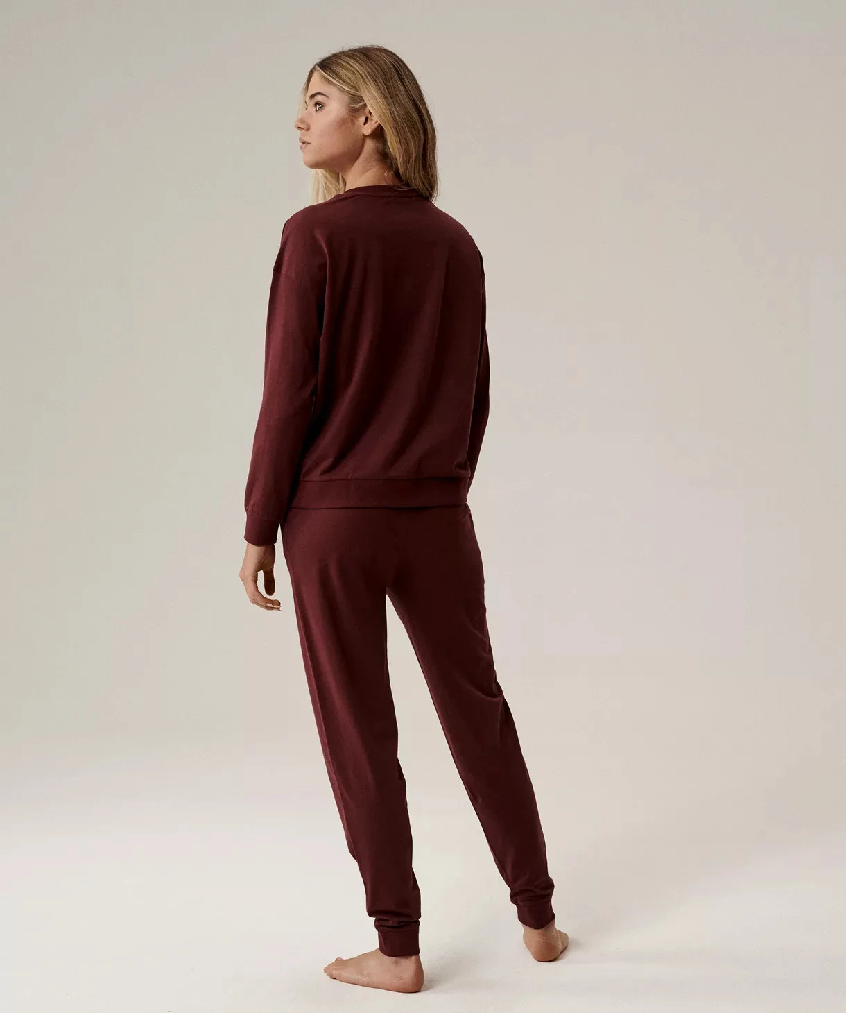 Horní díl s dlouhým rukávem je zdoben výrazným potiskem „Slow is good“, který evokuje pocit klidu, pohody a relaxace. Kalhoty jsou navrženy v klasickém střihu, zakončené manžetami, s elastickým pasem stáhnutelným šňůrkou pro pohodlné přizpůsobení postavě. Praktické boční kapsy u kalhot navíc spojují styl s funkčností