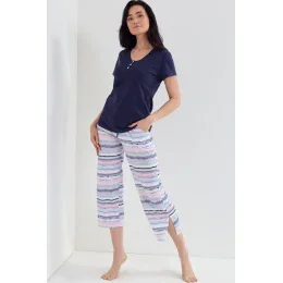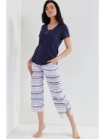 Dámské letní pyžamo z vysoce kvalitního bavlněného úpletu s letními pruhy.