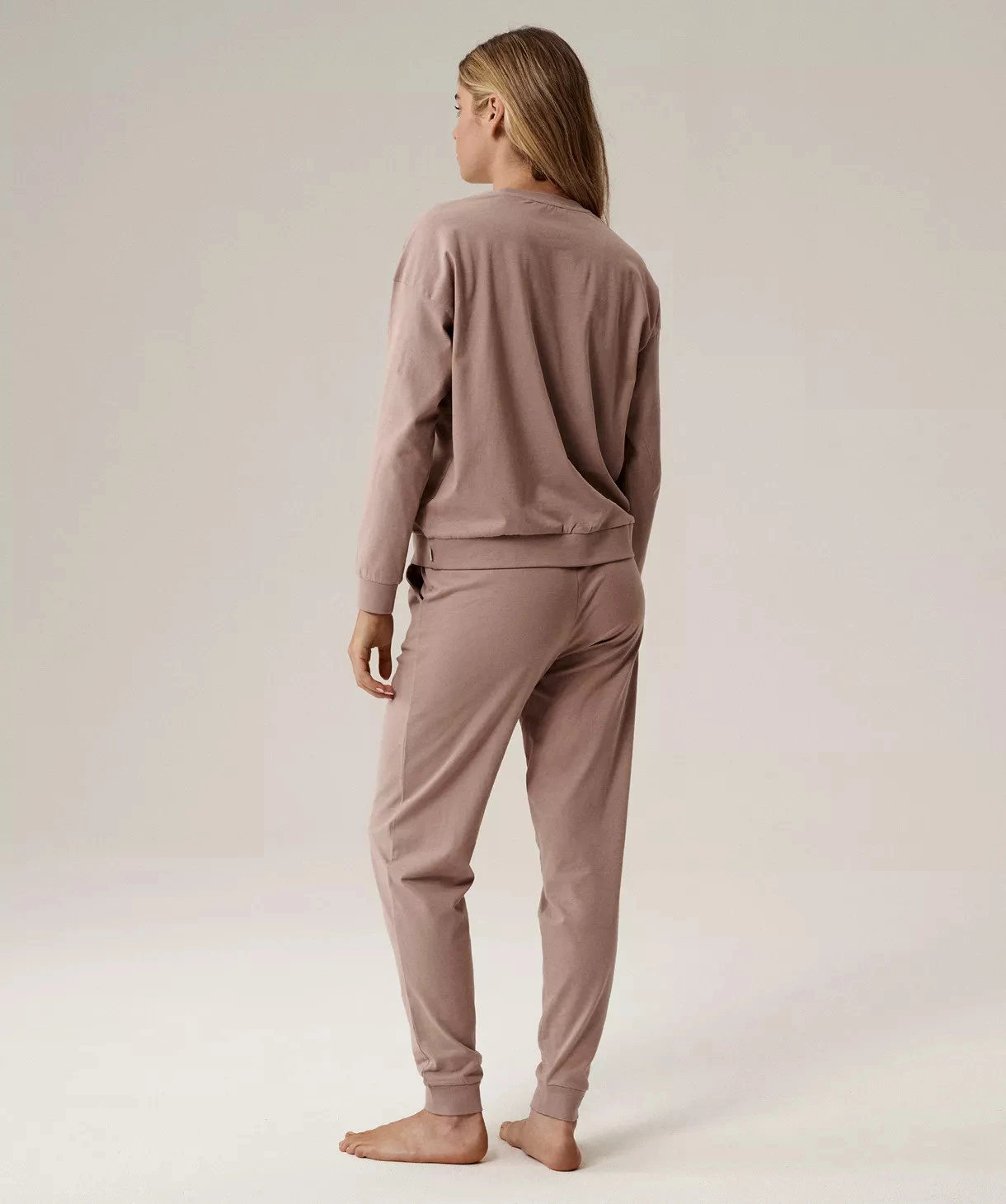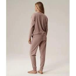 Horní díl s dlouhým rukávem je zdoben výrazným potiskem „Slow is good“, který evokuje pocit klidu, pohody a relaxace. Kalhoty jsou navrženy v klasickém střihu, zakončené manžetami, s elastickým pasem stáhnutelným šňůrkou pro pohodlné přizpůsobení postavě. Praktické boční kapsy u kalhot navíc spojují styl s funkčností