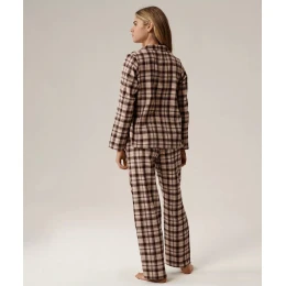 Objevte spojení něžnosti a pohodlí v tomto elegantním dámském pyžamu značky Atlantic. Model NLP-505-BRO_BEZ_ECR zaujme jemným vzorem v pastelové kostce (hnědá – béžová – ecru), který působí jemně, svěže a ženským dojmem.