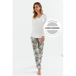 Piżama damska 417 Cana wanilia – kwiaty iron