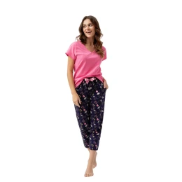 Mladé dámské pyžamo značky Luna, délka 7/8, kalhoty s potiskem, zdobené mašlí.