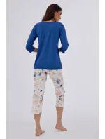 Dámské pyžamo s 3/4 rukávy, jednobarevné, vyrobené z modalu s elastanem, výstřih, 7/8 nohavice se vzorem.