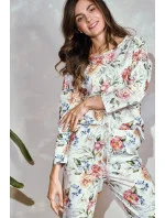 Dámské pyžamo se 7/8 dlouhými rukávy ze vzorované bavlny, kulatý výstřih, 7/8 dlouhé kalhoty, ozdobná šňůrka v pase.