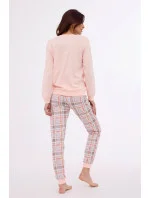 Dámské pyžamo z kvalitní měkké bavlny, tričko s dlouhým rukávem a barevným potiskem na přední straně, dlouhé kostkované kalhoty s výstřihem, manžetami a spodním lemem s pohodlnou šňůrkou v pase. Pyžamo je baleno v krabici.