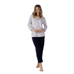 Dámské pyžamo s rukávy o délce 7/8, vzorované, s výstřihem. 7/8 dlouhé pevné kalhoty jako doplněk soupravy.