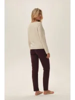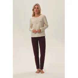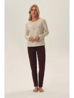 Dámské pyžamo vyrobené z jemné bavlny. Tričko s dlouhými rukávy, dlouhé vzorované kalhoty. Kulatý výstřih.