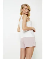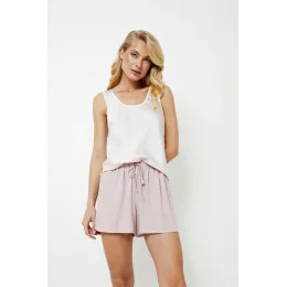 Piżama damska EMILIA short to lekka, kobieca propozycja idealna na ciepłe noce i letni wypoczynek w domu. Wykonana w Polsce z 100% miękkiej, naturalnej bawełny, gwarantuje wysoki komfort noszenia, przewiewność oraz delikatność dla skóry. Gładka bluzka w kolorze pudrowego różu z eleganckim dekoltem w kształcie litery V subtelnie podkreśla sylwetkę i dodaje całości nowoczesnego charakteru. Krótkie spodenki w romantyczny, kwiatowy wzór, ozdobione różową kokardką w pasie, nadają piżamie lekkości i dziewczęcego uroku. Model