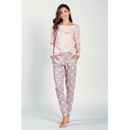 Dámské pyžamo s dlouhými rukávy, přední díl s potiskem, vzorované dlouhé kalhoty s kapsami.