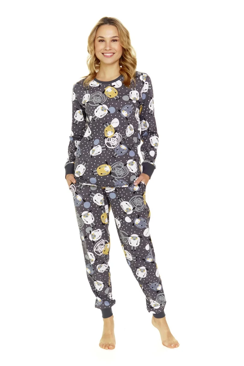 Dámské pyžamo z kvalitní měkké bavlny. dlouhé vzorované tričko. dlouhé vzorované kalhoty s kapsami. výstřih, manžety a nohavice zakončené pohodlným žebrovaným lemem.