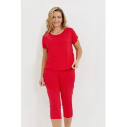 Dámské pyžamo s krátkým rukávem ušité z vysoce kvalitní viskózy. Na ramenou je našitá kontrastní krajka. Doplněno kalhotami v rybářském stylu.