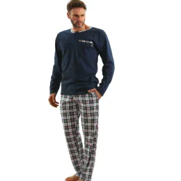 Bavlněné pánské pyžamo .tričko s dlouhým rukávem k dlouhým kalhotám s kapsami.